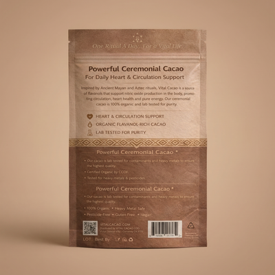 VitalCacao is ceremonial-grade Criollo cacao,the same variety studied in the COSMOS trial, where 21,442 participants showed a 27% reduction in cardiovascular mortality over 3.6 years.Unlike supermarket cocoa, VitalCacao is never alkalized or dutch-processed. That single difference preserves 600–800mg of flavanols per serving. the bioactive compounds that trigger your body's own nitric oxide production and help your blood vessels relax from within.One morning cup. The same time every day. That's the entire protocol.